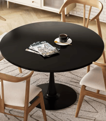 Black round Dining Table, 42.1″ Tulip Table Kitchen Dining Table 4-6 People with MDF Table Top & Pedestal Base, Mid-Century End