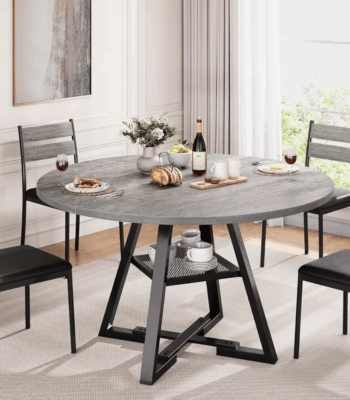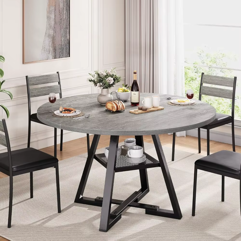 Round Dining Table for 4,Kitchen Dining Room Circle Dinner Pedestal Table,Space Saving Wood Kitchen & Dining Room Furniture, 42In,Grey •